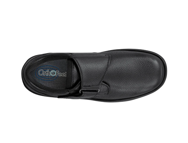 Dressed up or dressed down, however wide or narrow your feet, Orthofeet's low-impact walking comfort and irritation-free protection have a starring role in this supple leather monk strap design. The adjustable strap opens the upper wide, making these easy to get on, while a roomy toe box and soft, seam-free interior deliver inspiring performance for everyday mobility.